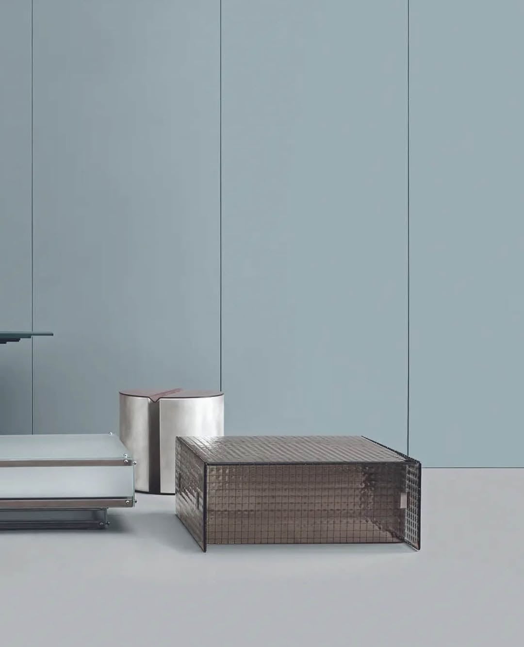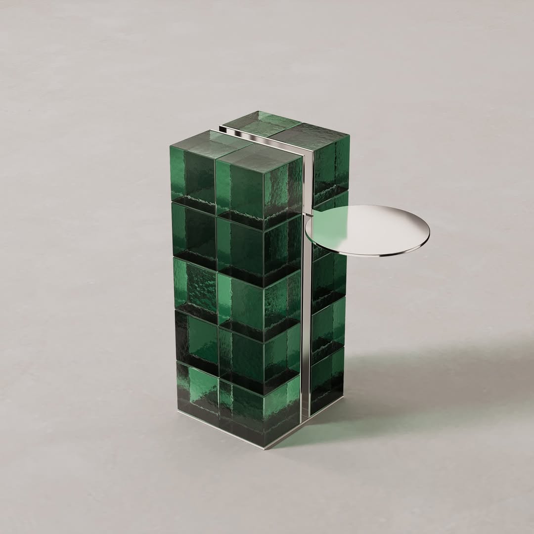 Ommi, presented as part of Gallotti & Radice’s Tales in Glass exhibition at Palazzo Meli Lupi di Soragna, is a side table crafted from cast transparent wired glass and bronze-coloured glass, a precise and refined contribution to a show celebrating 70 years of the Italian glass pioneer. Understated in the best sense: a piece that earns its place through material intelligence rather than visual volume.