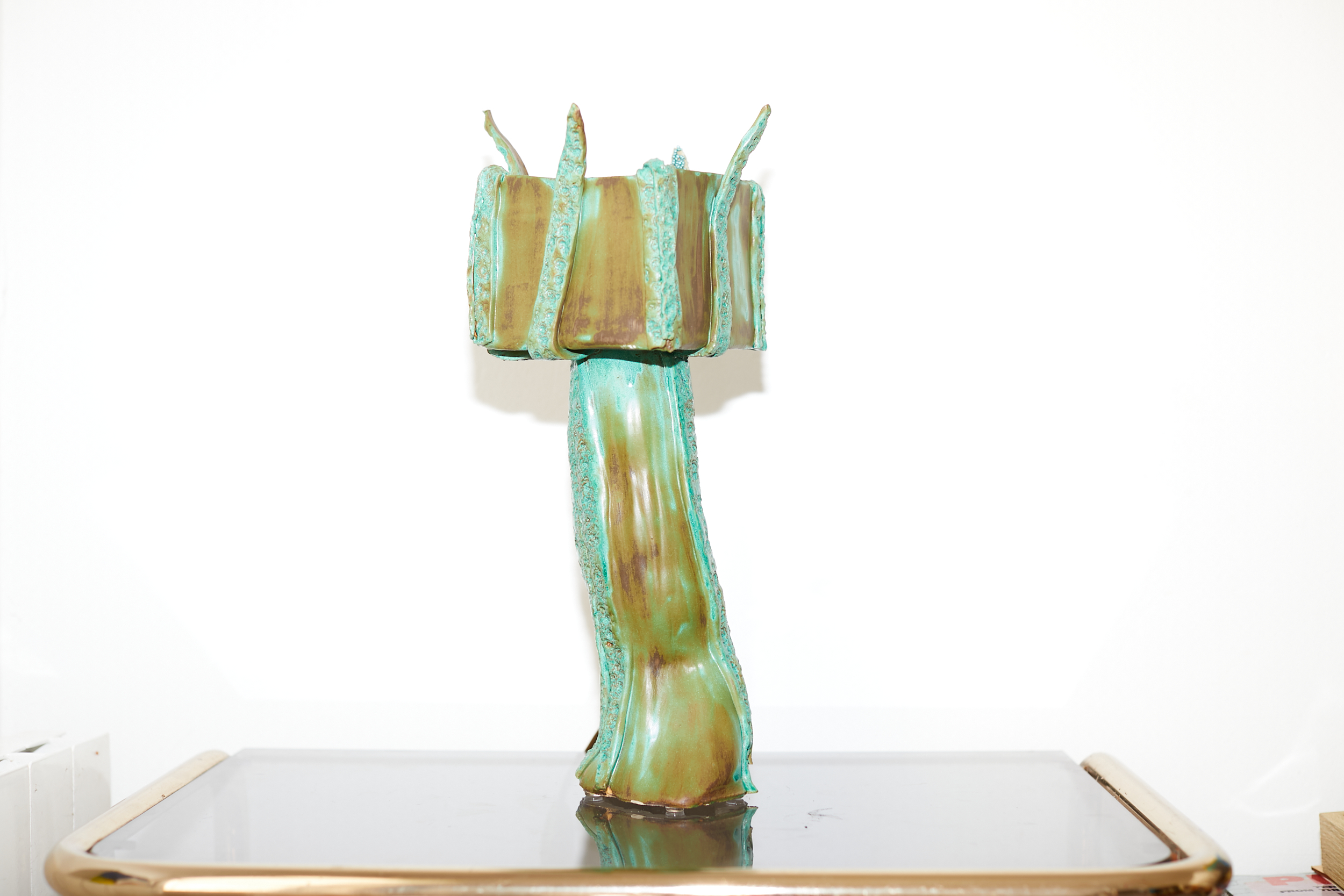 UTTU.O, presented at the Isola Design Gallery as part of the Fondazione Kenta exhibition at Fabbrica Sassetti, explores femininity as a material language through surface, light, and craft. The collection of ceramic lamps draws on textile traditions, translating lace, ornament, and pattern into sculptural ceramic form, with layered glazes evoking coastal Mediterranean textures: algae, erosion, organic growth. Lace functions as a filter for light, casting soft, patterned shadows that extend the textile language into space. The pieces sit between collectible design and functional sculpture, reimagining the domestic object as simultaneously intimate and monumental.