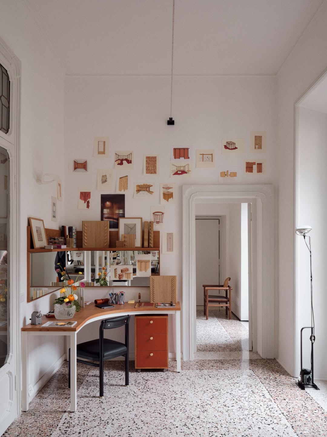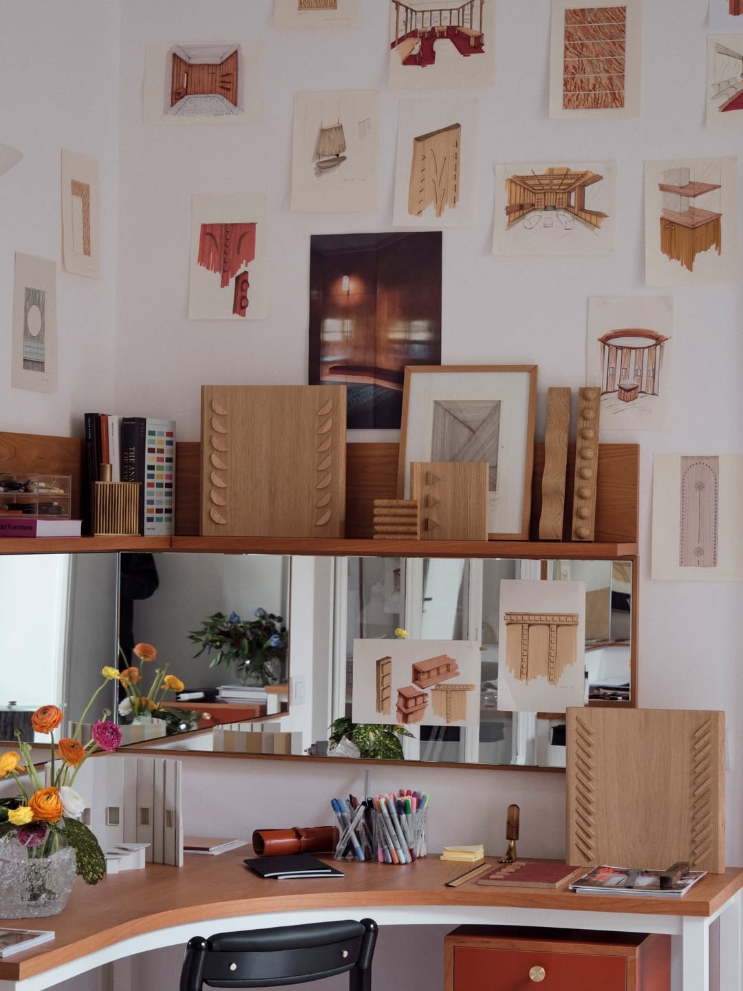 The official inauguration of David Raffoul and Nicolas Moussallem’s Milan studio was announced not with a single presentation but with a city-wide programme. La Boiserie at their new 5VIE project space introduced a modular reinterpretation of classical wood panelling, integrating storage and ornament into a continuous spatial system. At Nilufar Depot, The Bedroom, draped in hand-painted and embroidered wallcoverings by de Gournay, collapsed the boundary between interior design and scenography. They also unveiled Scapula, a sculptural armchair developed with Ceccotti Collezioni that translates the anatomy of a shoulder blade into graphic form. Milan, where the duo opened their second studio in 2021, has never felt more like home ground.