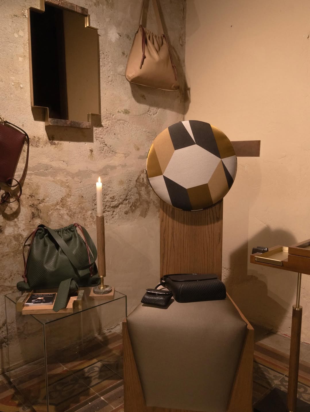 At Casa Giusti in the Porta Venezia district, the exhibition Li Beirut: Between Shadow and Light transformed the Italian accessories brand’s creative hub into a sensorial environment reinterpreting the visual and emotional elements of a Beirut home, incorporating scent, sound, and accumulated personal history. Lebanese architect Rami Lazkani introduced arches and windows that gestured toward the city’s architectural continuity, while Youssef El Hadi of YEH Studio contributed sculptural furniture embedded with archival paintings by his grandmother. The collaborative project positions Lebanese identity as something preserved yet continuously evolving.