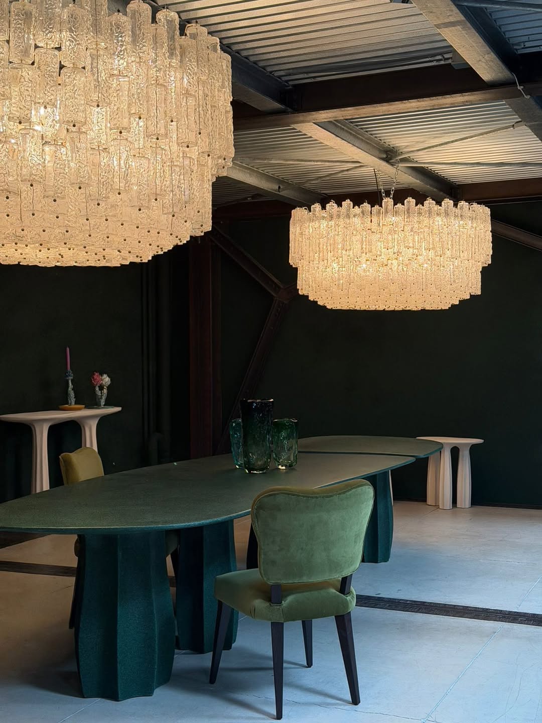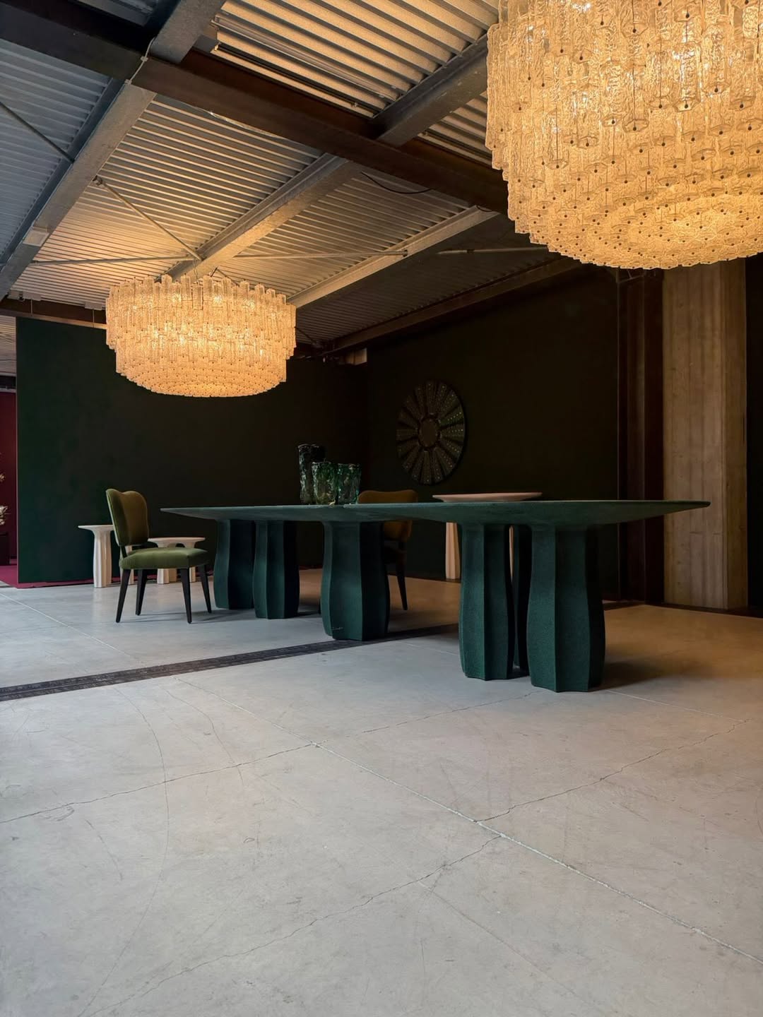 Rather than a single exhibition, Etereo presented a city-wide programme unfolding across four locations as four interconnected chapters: Mo.du.lo at The Pool NYC reinterpreting 1970s glass-block design; Imago at Nilufar Depot converging ceramic, burl wood, and bronze into sculptural seating; Ophelia at Casa Conte balancing quartzite and steel in architectural dining forms; and Medusa at Alimonti Milano treating onyx as draped matter. A cohesive narrative dispersed across the city, each chapter distinct and all of them unmistakably the same voice.