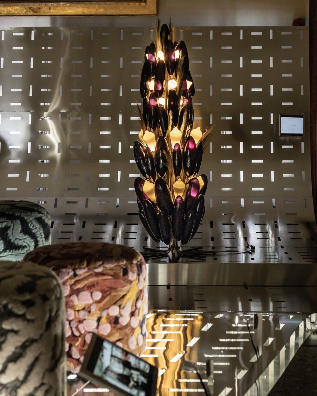 Vessels of the Intangible at 5VIE is the kind of work that resists easy categorisation, and that is entirely the point. Structured around the five senses, the collection translates sight, sound, scent, taste, and touch into sculptural light objects crafted through metalwork, leather, blown glass, and embroidery. Yasmine describes the showcase as a “Neo Ritual Baroque,” where light functions not as illumination but as an internal force emerging from within each form. It is among the most philosophically charged presentations of the week, hovering somewhere between altar piece and design statement.