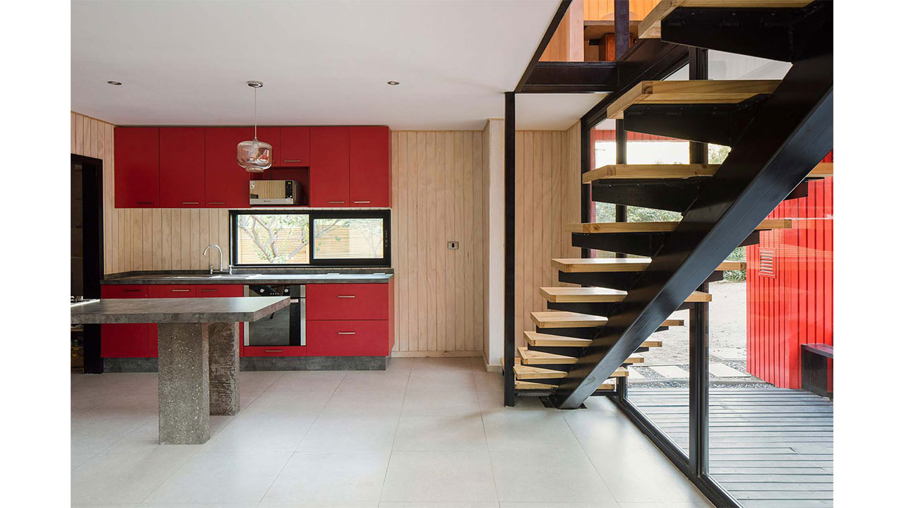 Within the rolling mountains of San José de Maipo, Casa La Roja cuts through the greenery in a vibrant statement of red. Located in Chile, Felipe Assadi Arquitectos have created a homely cabin enveloped by rough terrain.