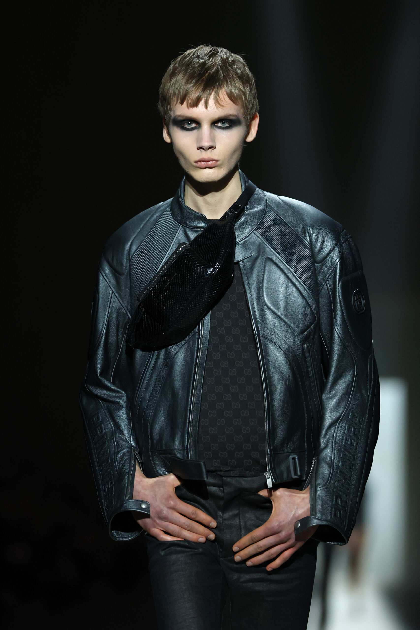We’ve all seen the instantly “memefied” clip of British rapper Fakemink practically strolling across Gucci’s runway in full black, a cross-body logo-mania fanny pack slung across his chest, pausing mid-walk to check his phone. It was shareable because, much like Demna’s debut show for the Italian house, it felt human. The runway also featured a roster of the internet’s It youth, from Fakemink to Nettspend, Gabriette, and Vivian Wilson, each bringing their own digital-era nonchalance to the spectacle.