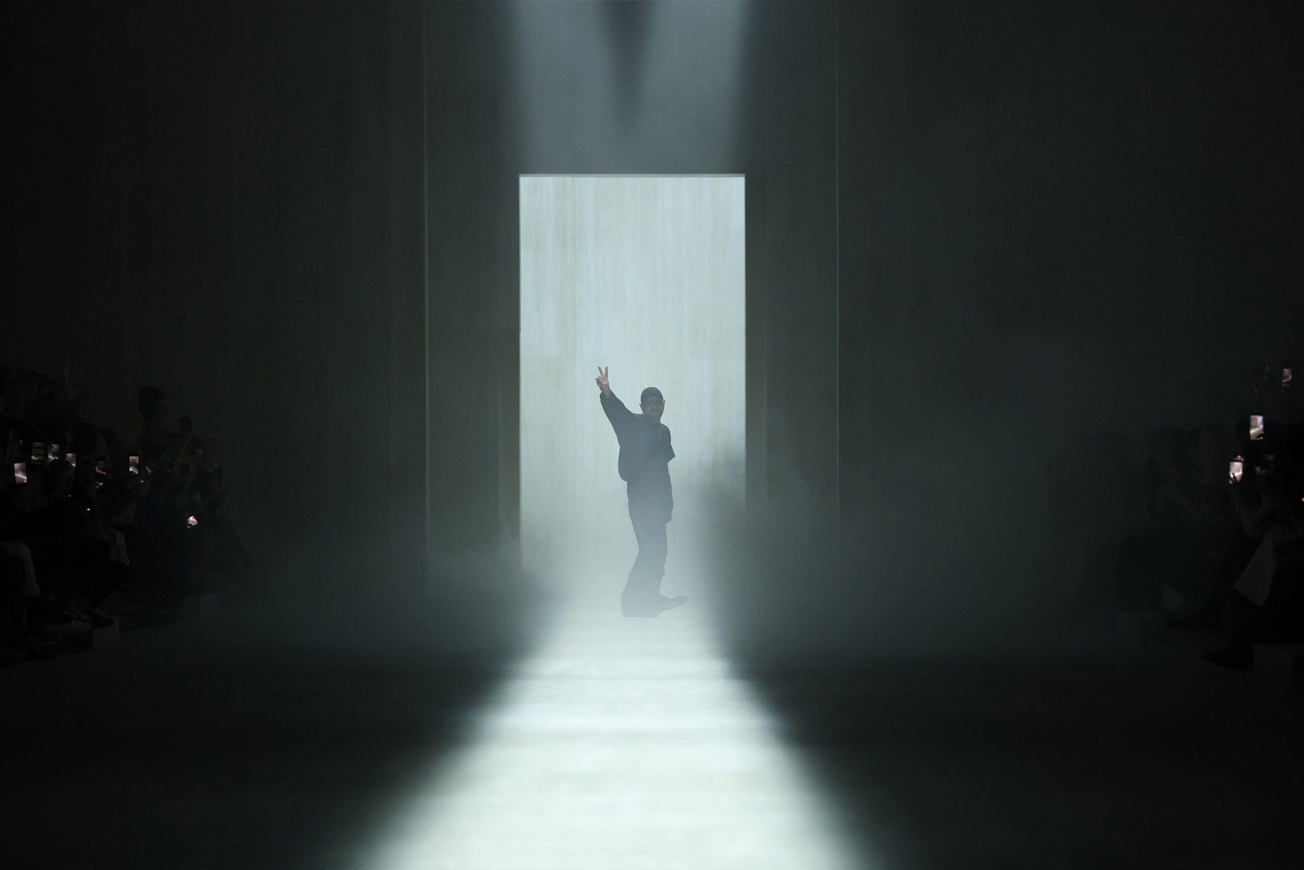 MILAN, ITALY – FEBRUARY 27: Fashion designer Demna Gvasalia acknowledges the applause of the audience at the Gucci FW26 Fashion Show at Palazzo Delle Scintille on February 27, 2026 in Milan, Italy. (Photo by Daniele Venturelli/Getty Images for Gucci)