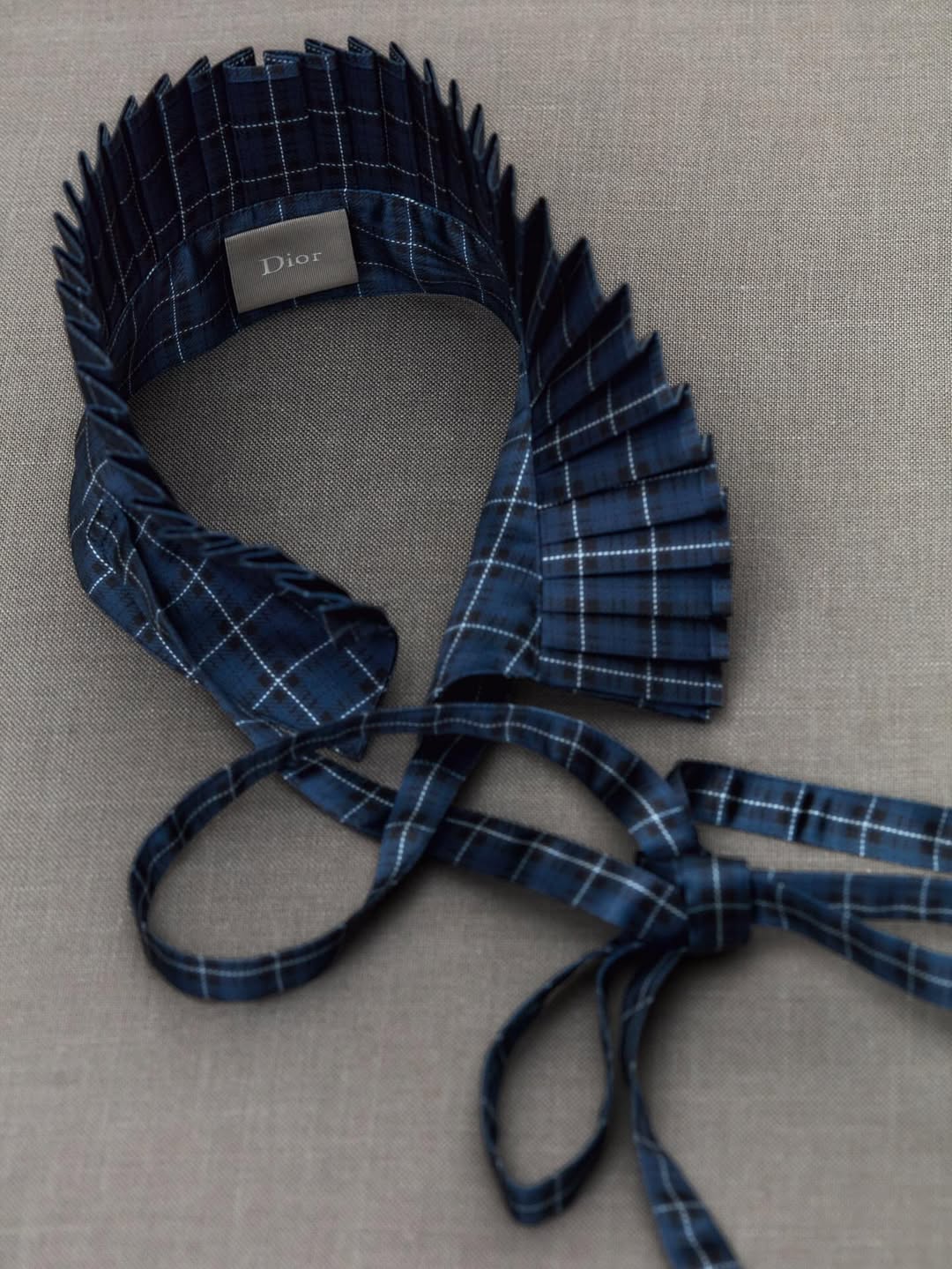 The buzz began with Dior’s official teaser on Instagram, where Anderson posted a carousel preview of accessories and jewelry, including gem bracelets and necklaces, and a distinctive collar piece that doubled as the show invitation. The collar’s almost theatrical proportions, part clownish pageboy ruff, part regal neckpiece, hint at a recurring motif: ceremonial ornamentation framed with Anderson’s signature wit. (This follows his known love of playing with neckwear and collar details; in his SS26 debut ties were styled backwards, half-tucked or inverted for expressive effect.)