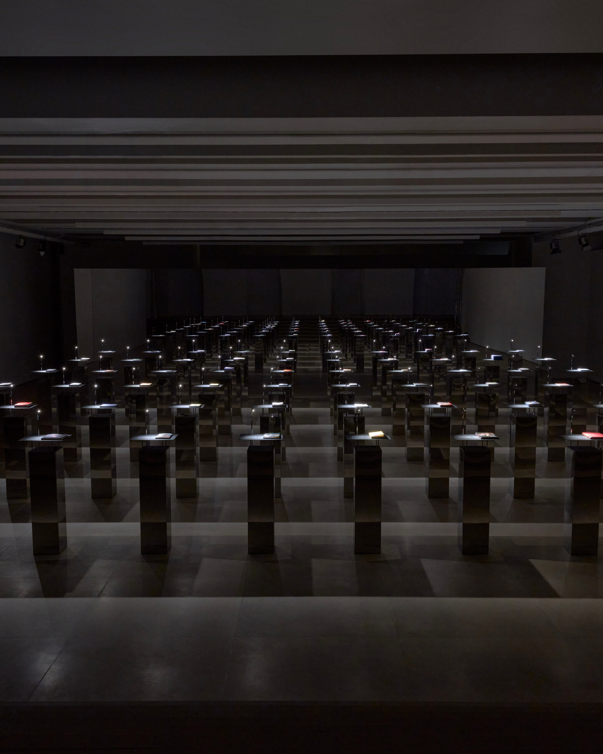 The most restrained and arguably the most considered thing at Salone this year. Jil Sander and Apartamento magazine brought together 60 books chosen by 60 contributors; writers, designers, architects, filmmakers, thinkers. and presented them at the Jil Sander showroom on chrome lecterns, each lit by a reading beam, mirrored wall carrying their reflection back. Entry by timed registration; visitors given white gloves on arrival. The gloves to keep. The books to stay. The title: Reference Library. In a week when most brands were competing on spectacle, Jil Sander and Apartamento made a case for slowing down. which, given the show’s explicit framing around the decline of reading and the attention economy, felt like more than set dressing.