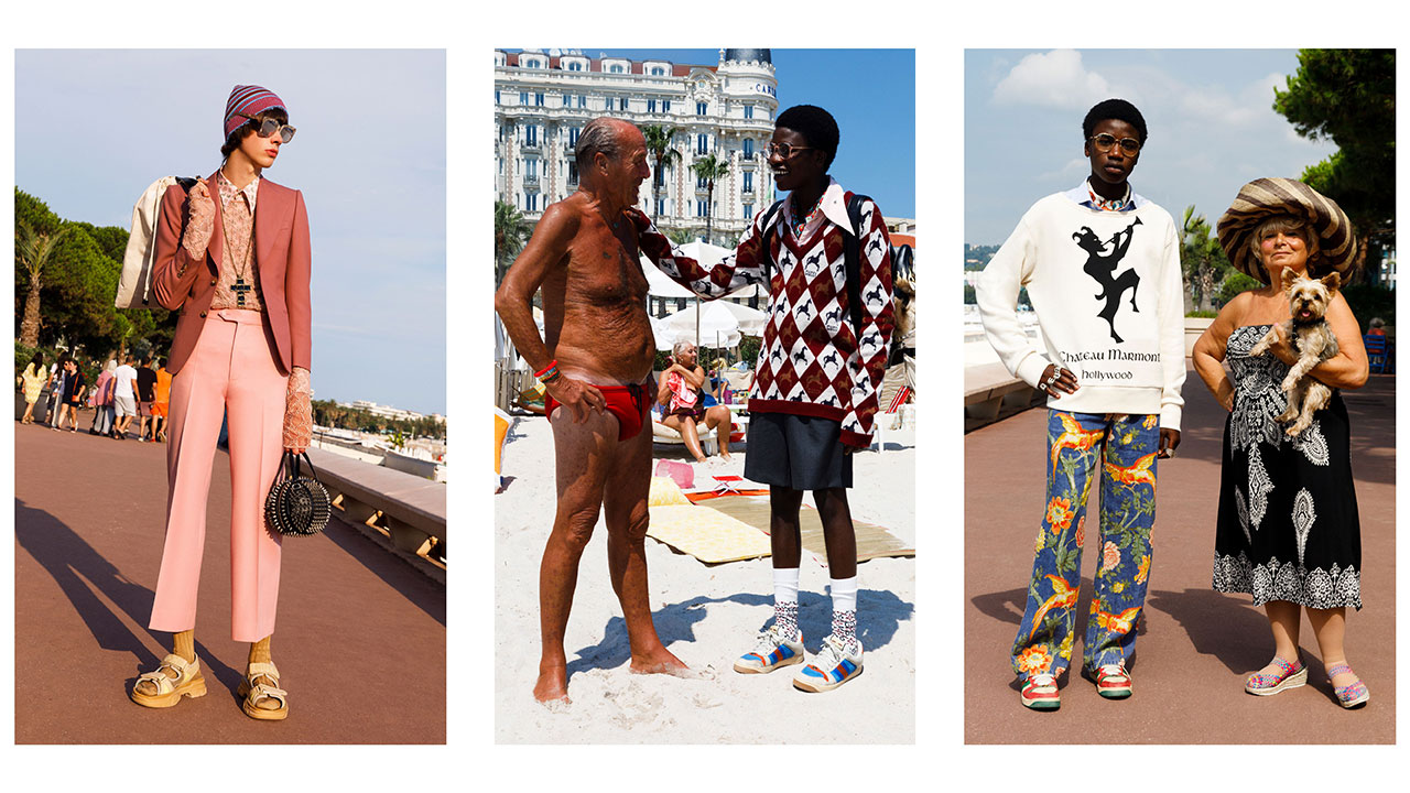 From the Côte d’Azur like the Carlton hotel, the Croisette and the beach club, models wore full Gucci looks while sight seeing in the French city. A little overdressed for a Summer vacation, locals were also involved in the shoot.