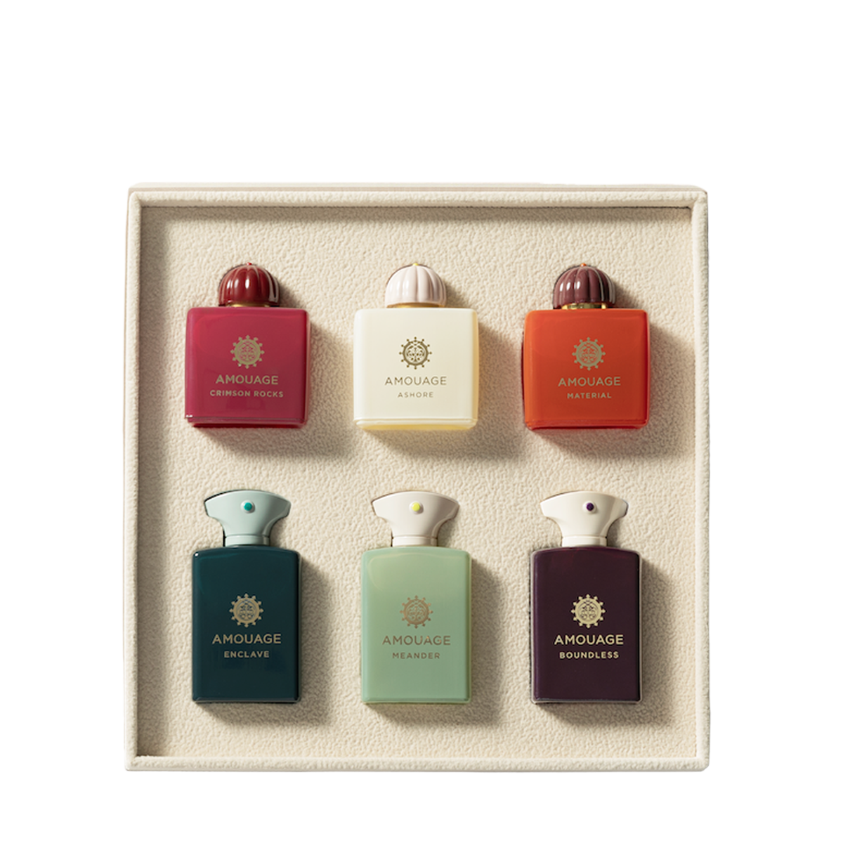 Still finding your scent? The Odyssey Miniature Set has got you covered with 6 x 7.5 splash bottles in scents: Crimson, Rocks, Ashore, Material, Enclave, Meander, Boundless. A mixture of masculine, feminine, and unisex scents – the ultimate guide for him (and her).