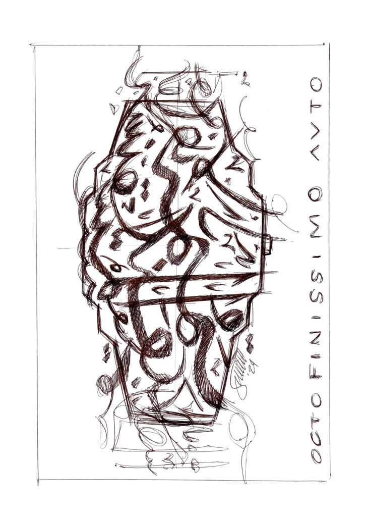 Even with his long-standing fascination for the script, Fabrizio was well aware that Arabic calligraphy required a master’s hand, though that did not stop him from experimenting early on. “I remember very well when I showed some of the sketches to Mattar. Mattar told me, Fabrizio, this is not even Arabic! What is this? I don’t know. We took it on the internet and we just put it to have an idea. This is not Arabic. Maybe a mix of Persian, Iranian and something like that.”