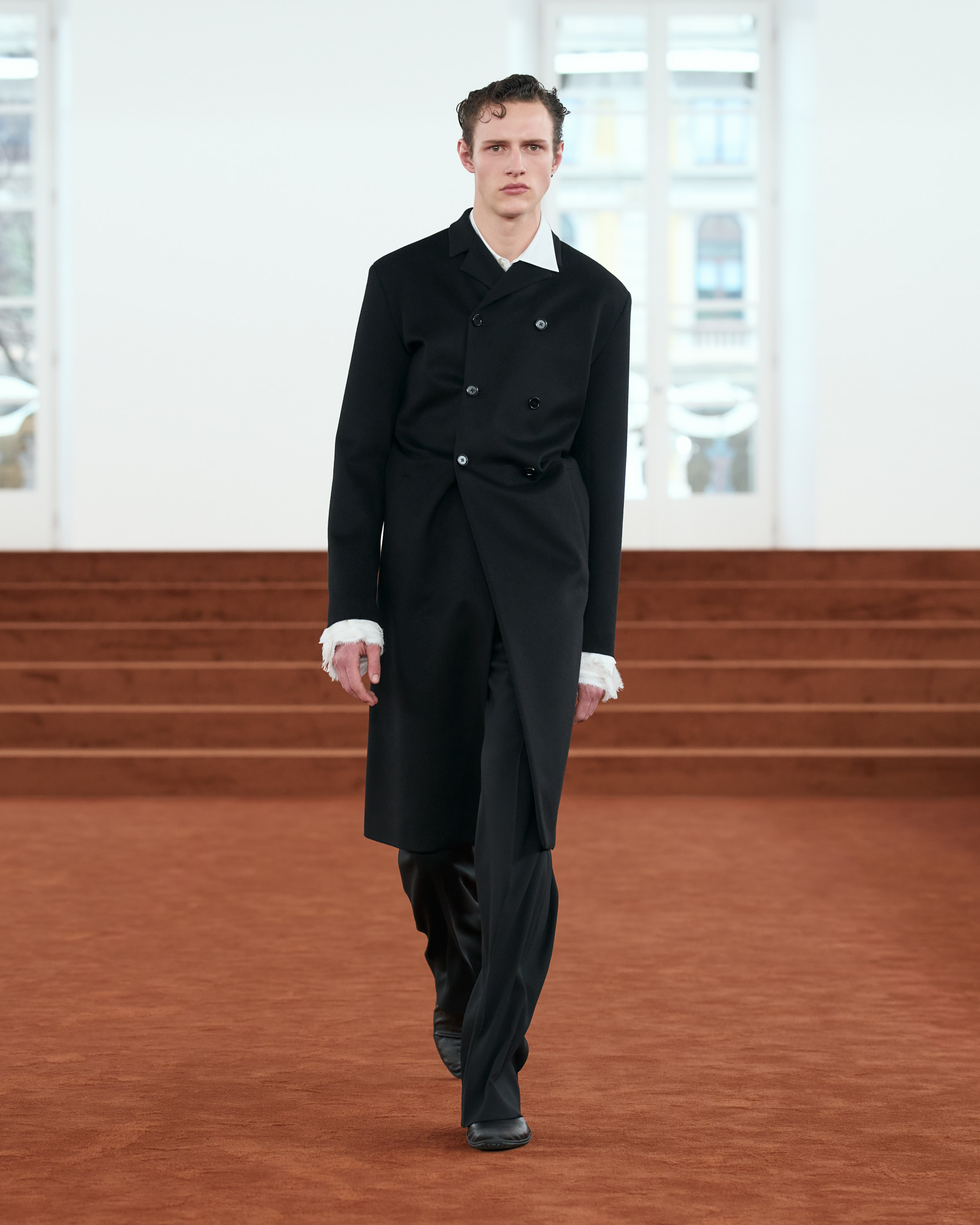JIL SANDER revealed its Fall/Winter 2026 men’s collection on 25 February, as part of Milan Fashion Week. For his second outing with the brand, Simone Bellotti approached the idea of home as a guiding theme, a space that can feel secure, uneasy, or layered with contradictions. He drew connections between the brand’s aesthetic and its Milan headquarters, considering both as frameworks shaped by memory and experience. The collection moves beyond minimalism, exploring how volume, curves, and playful contradictions can coexist within the house’s disciplined language.