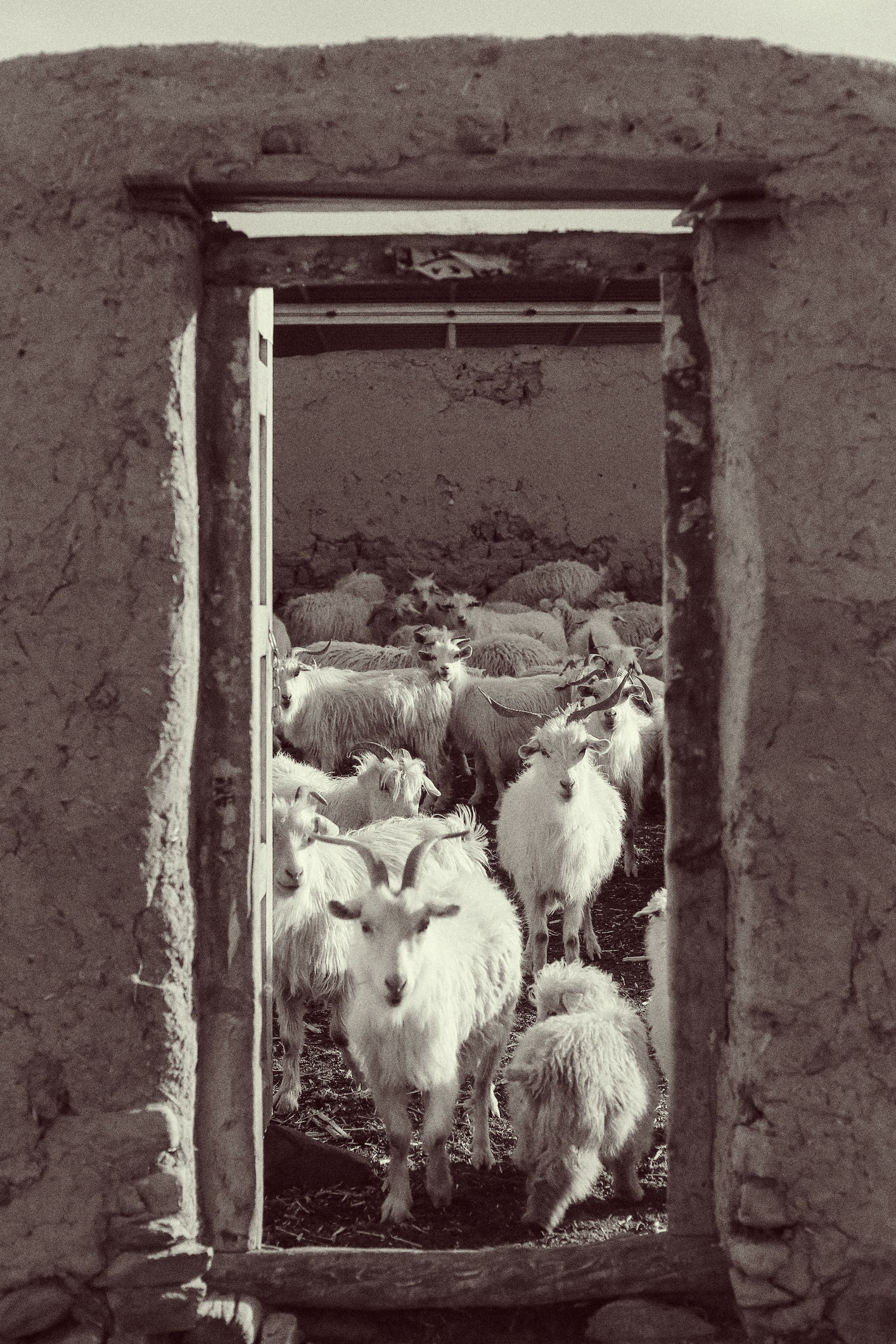 Each shepherdess knows her flock by heart, even when it numbers in the hundreds. She instinctively recognises them as she knows her own children. Using a variety of vocal tones, each carrying a different meaning, she communicates with her flock. For instance, a low, rolling ‘R’ sound is to call the animals to water.