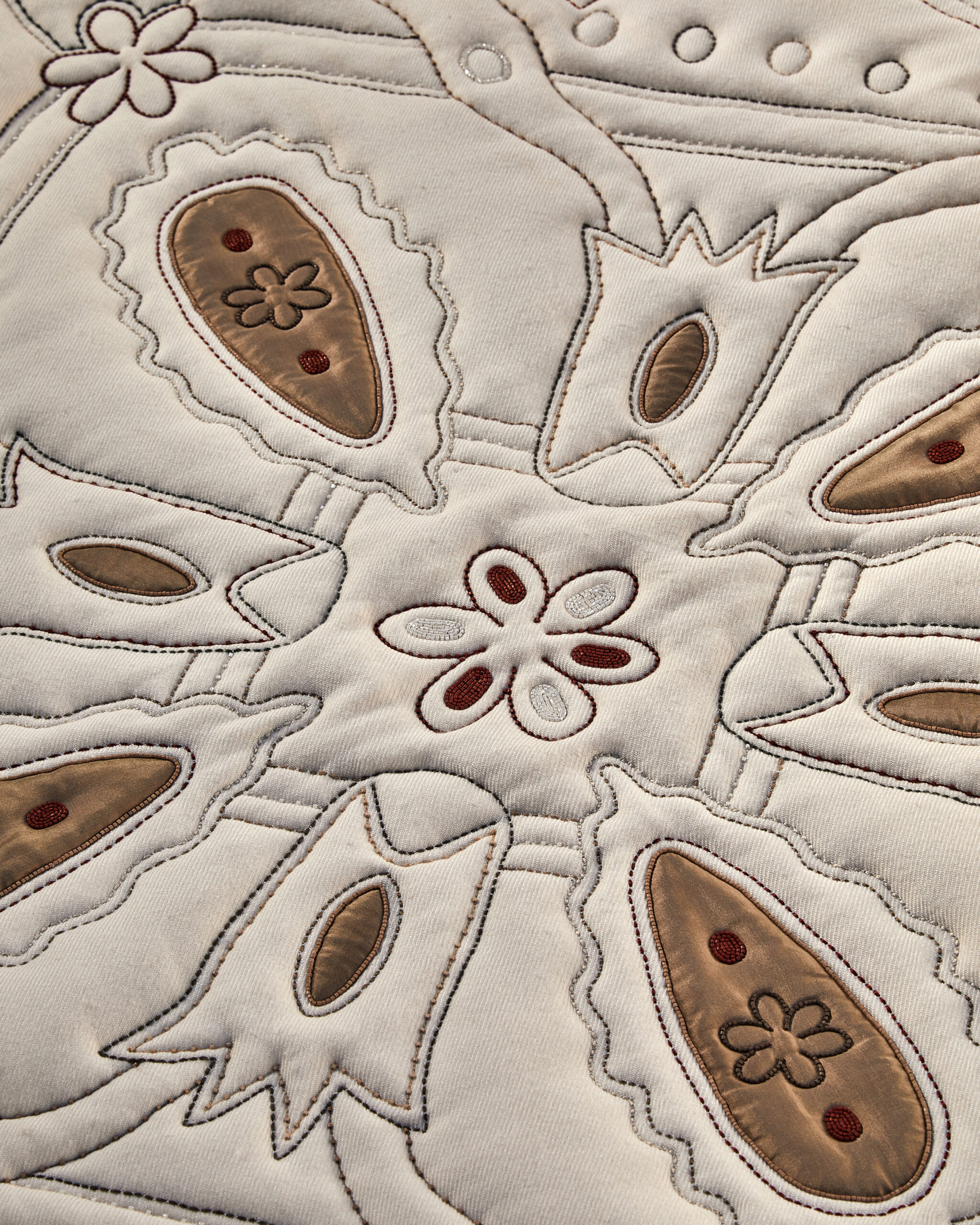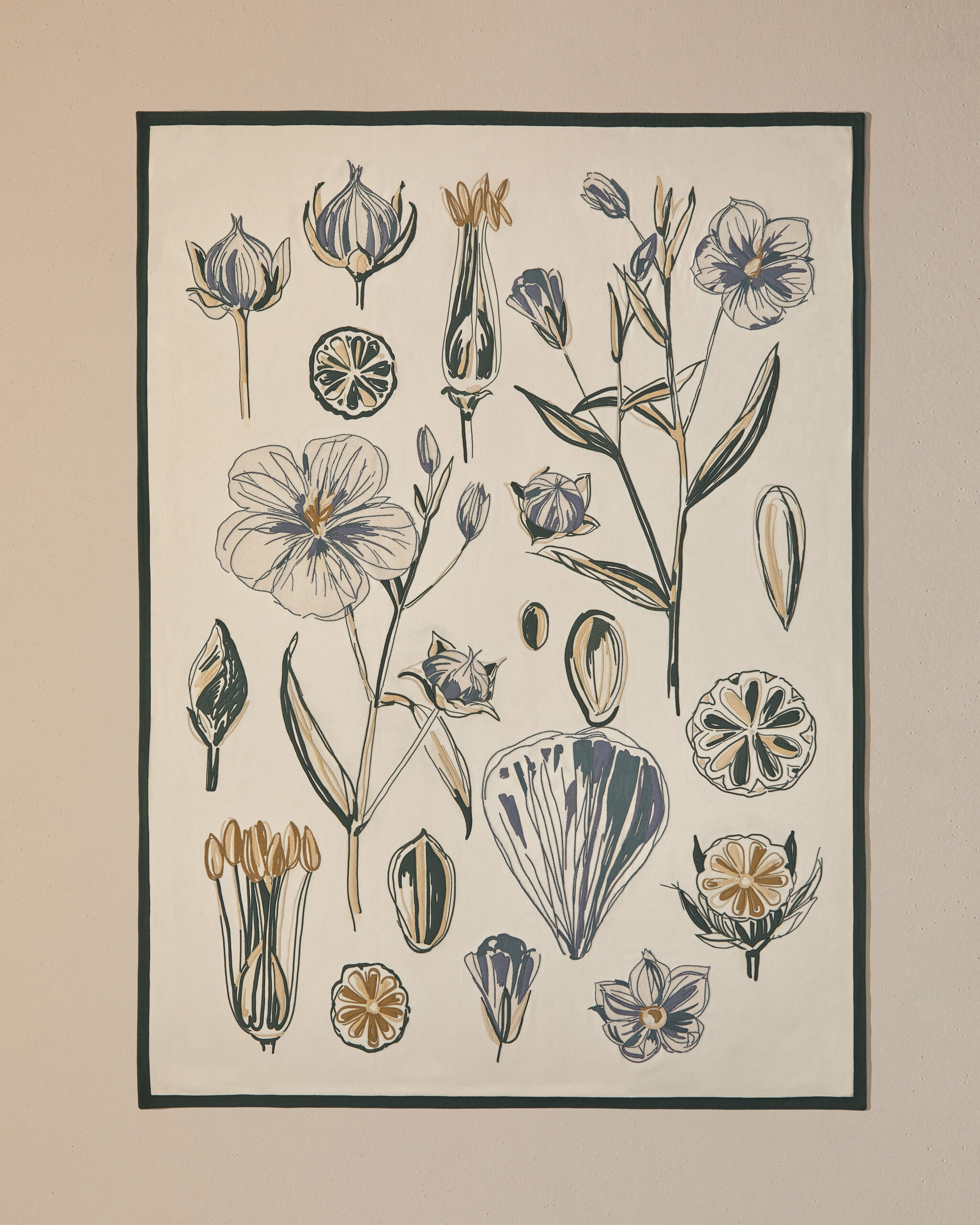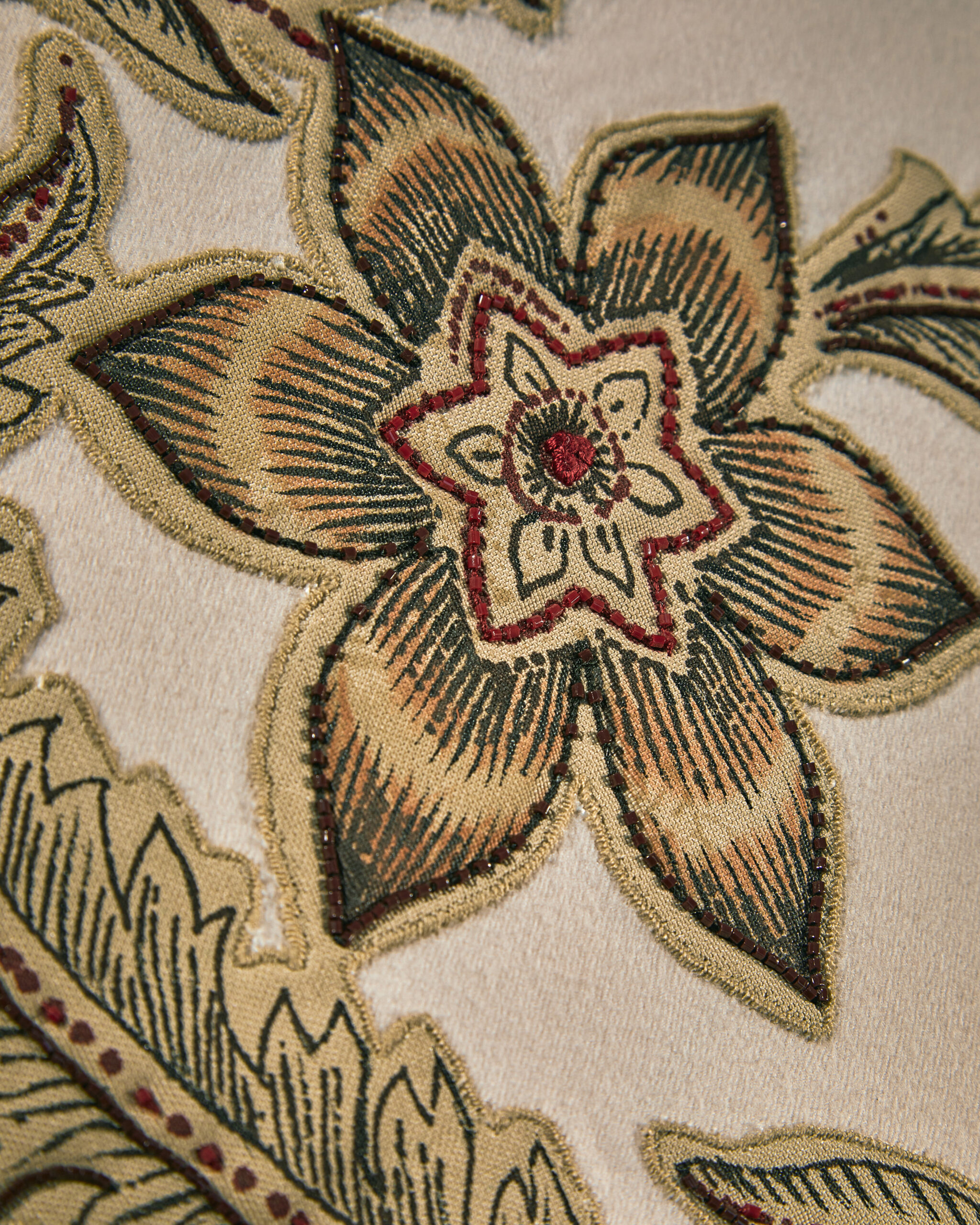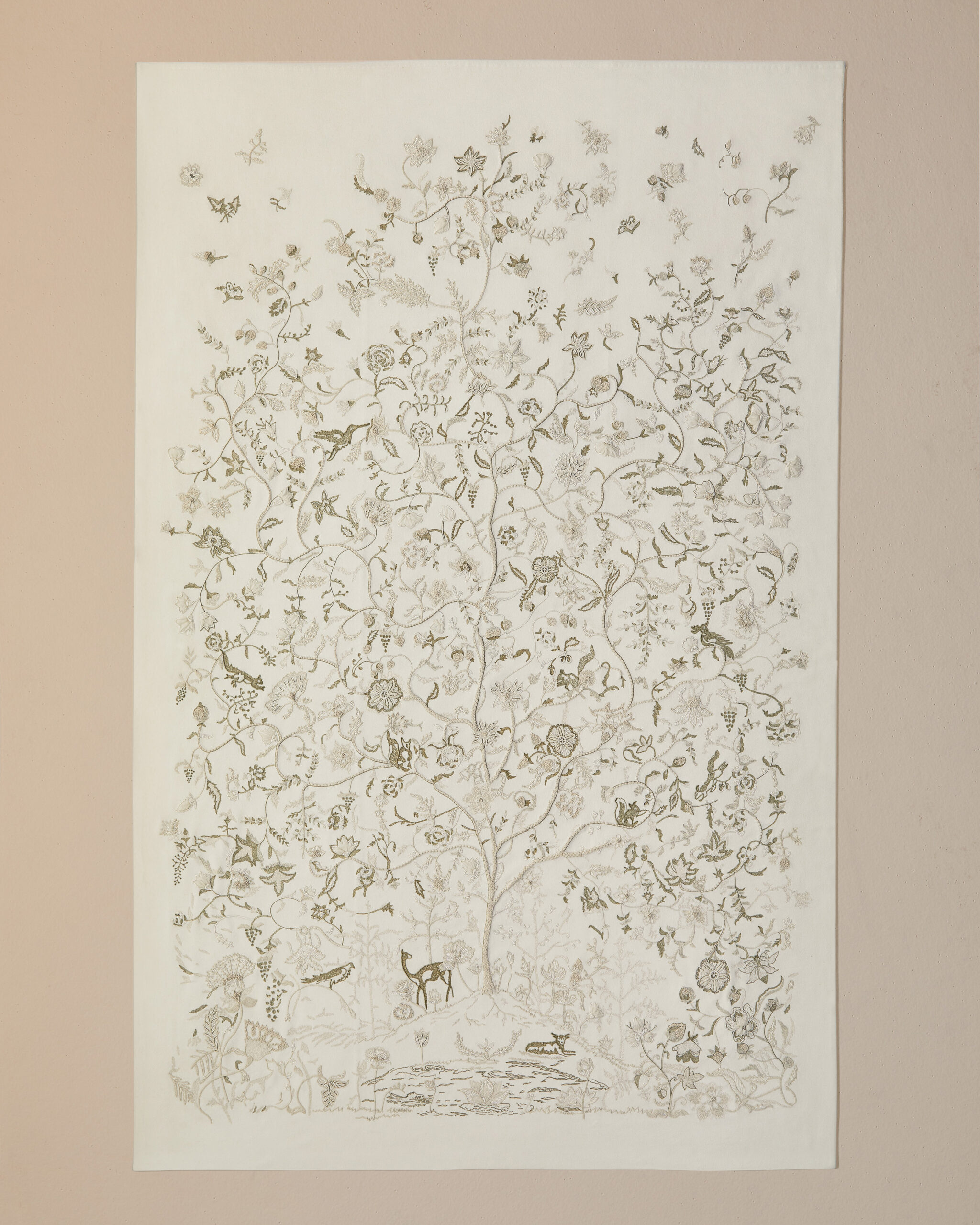 The result is an exercise in decoration that quietly refuses to be about decoration. Historic symbols and graphic elements drawn from the house archives reappear across the selection, motifs translated into contemporary compositions, landscapes tied to the brand’s origins, botanical references alongside more abstract forms. Each piece is made exclusively to order, approached like couture. But the installation shifts focus, making it less about the object itself and more about understanding it. A reminder that for Loro Piana, everything starts with the raw material. Refinement is what follows.