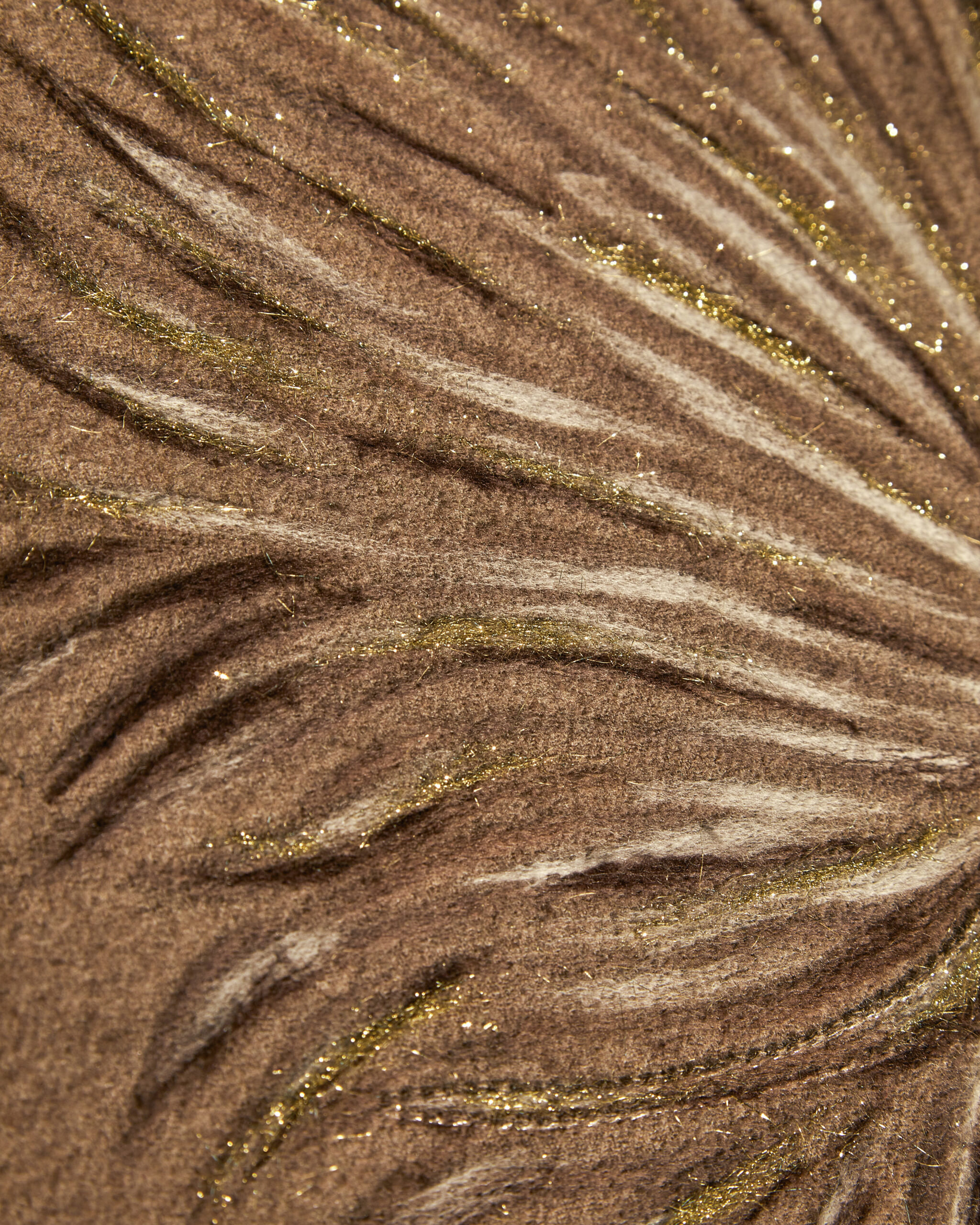 The space is designed as a passage, with suspended textiles that allow each piece to fully open and reveal its structure. Alongside the finished works, raw fibres and yarns are presented, tracing the process from origin to final object. The craft on display ranges from handloom weaving to embroidery and appliqué, techniques each carrying their own rhythm and connotation, filtered through Loro Piana’s restrained sensibility. The materials are the house’s signature Excellences: vicuña, sourced from the high-altitude Andes, where the animals can only be shorn once every two years; Baby Cashmere, obtained from the underfleece of a baby Capra hircus goat, combed out once in the kid’s lifetime before it turns one; alongside linen, Wish® wool and Pecora Nera® wool. Fibres sourced from opposite ends of the earth, each with an origin story that Loro Piana has spent decades protecting.