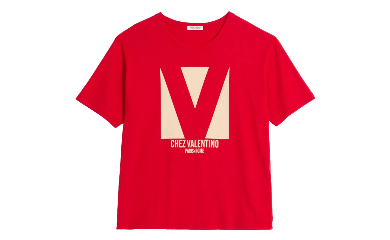 T-SHIRT WITH CHEZ VALENTINO PRINT, VALENTINO, $1,190, SHOP NOW
