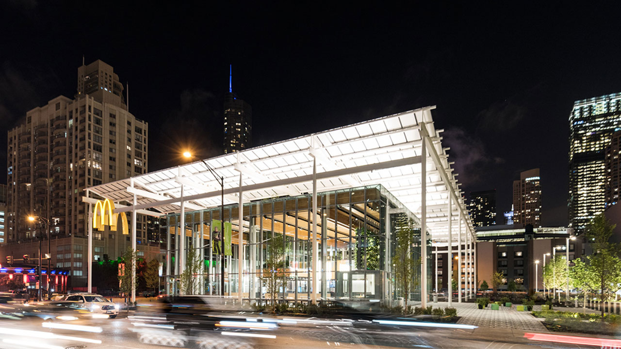 Located on Clark and Ontario in the city of Chicago, fast food chain McDonald’s has received a luxurious upgrade. What could be mistaken as an Apple store, its single-level structure has been designed with the environment in mind.
