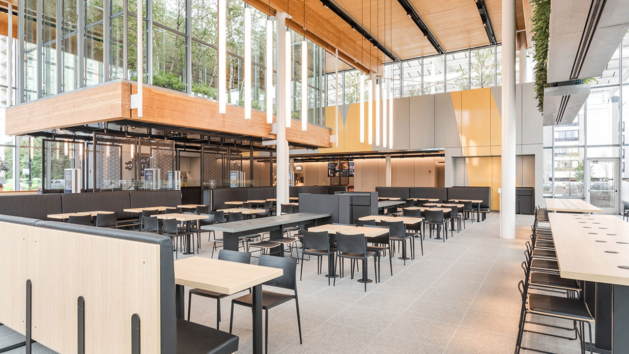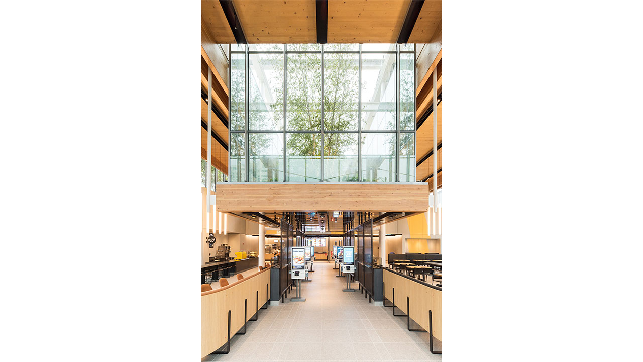 Commissioned by the team at Chicago-based firm Ross Barney Architects, the take-out store has been transformed into a clean, modern, industrial style space. Coined the McDonald’s Global Menu Restaurant, the special flagship store has been constructed as part of the new global headquarters for the company.