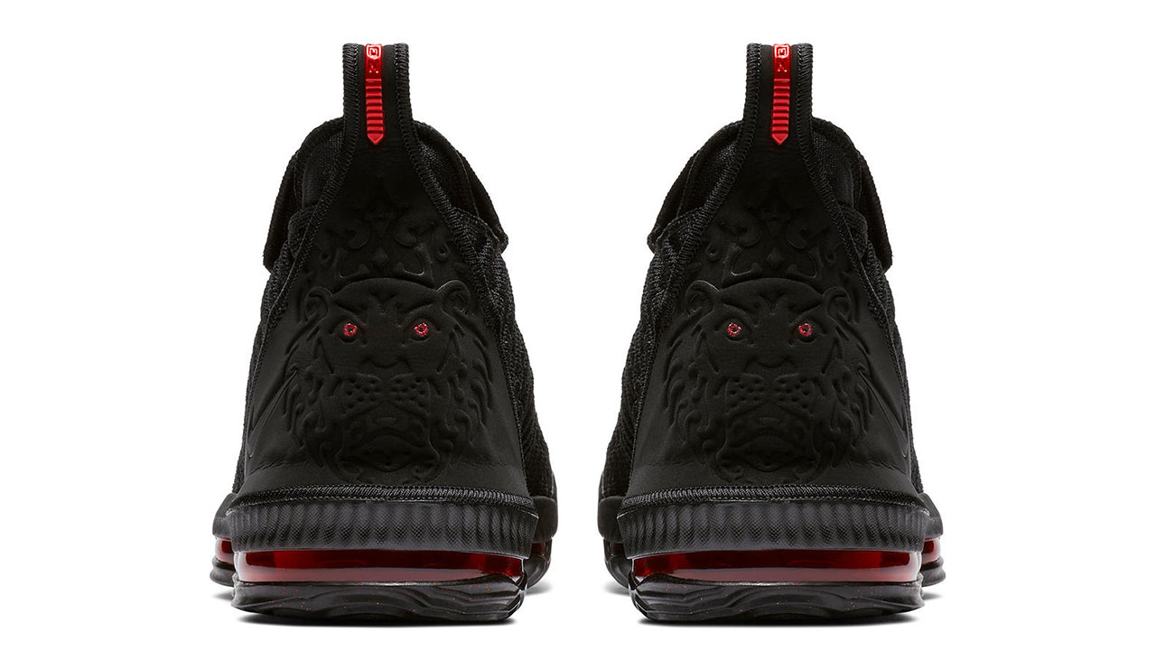 Taking elements from the earlier LeBron 15, the latest design introduces the Battleknit 2.0, an innovation of the scallop knit. Created specifically for LeBron in mind, the updated technology increases tensile strength (important to contain James’s lateral force on court), in a finish complementing the players style. Other new features include a lower collar, allowing the player to move more freely around the court, as well as gusseted leather tongue and the same Max Air cushioning platform underfoot.