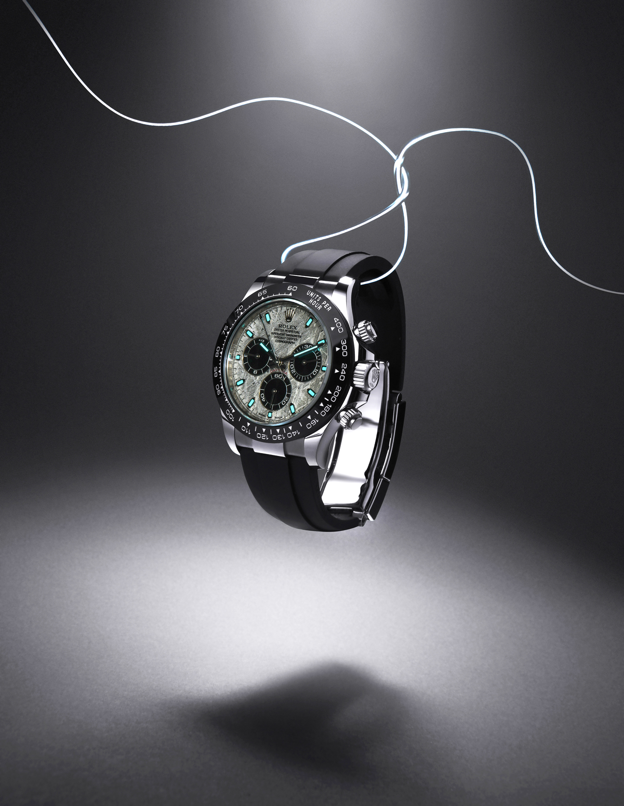 One of a trio of new Daytonas released earlier this year, the Oyster Perpetual Cosmograph Daytona Timepiece in 18ct white gold, meteorite and black dial (to give it its full, proper name) is the clear standout of an already exceptional collection.