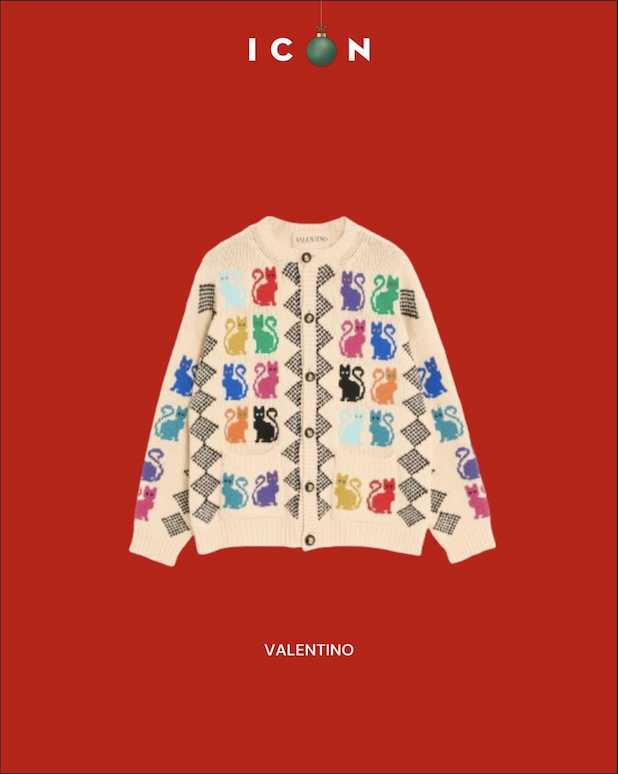 WOOL CARDIGAN WITH LE CHAT DE LA MAISON JACQUARD PATTERN, VALENTINO, SHOP NOW