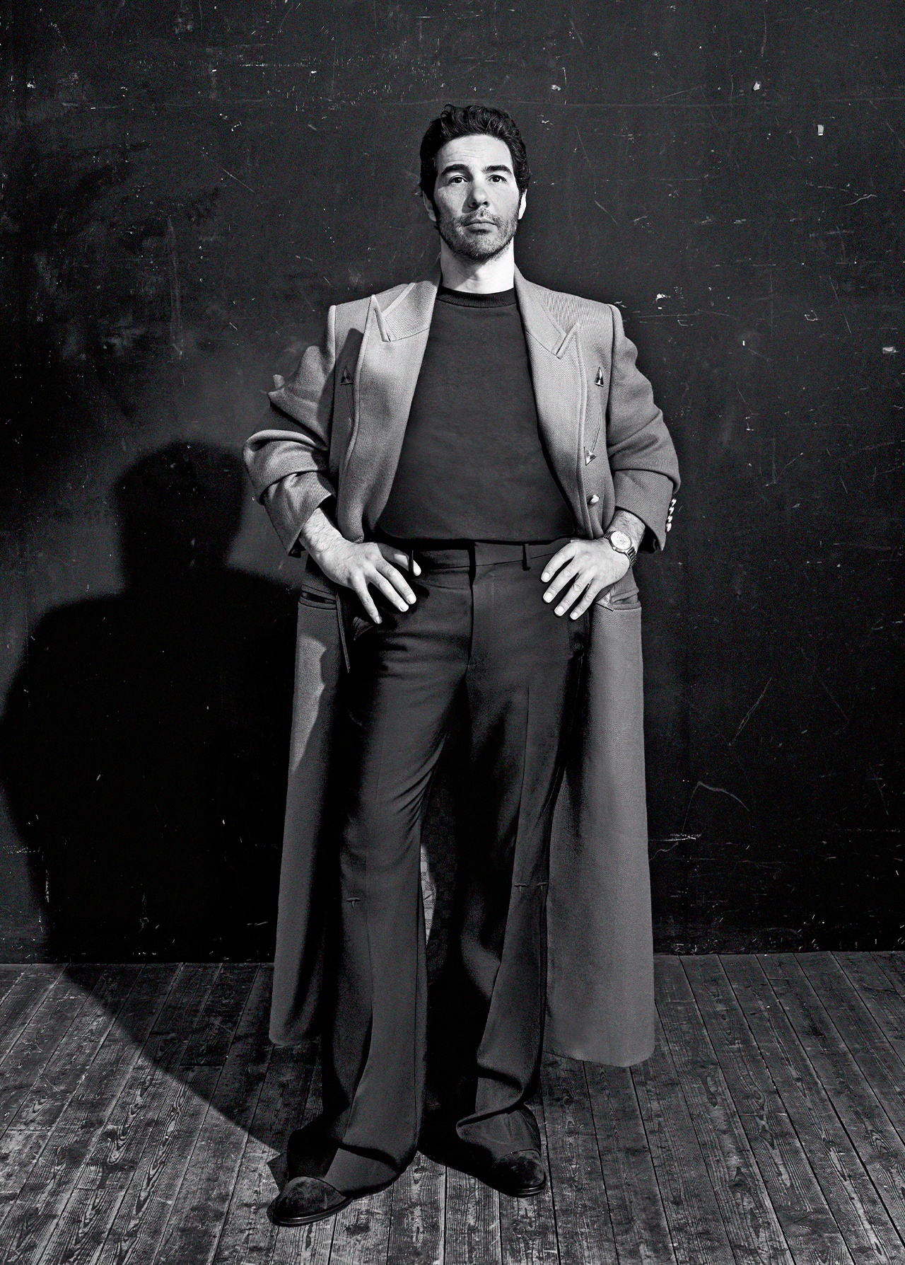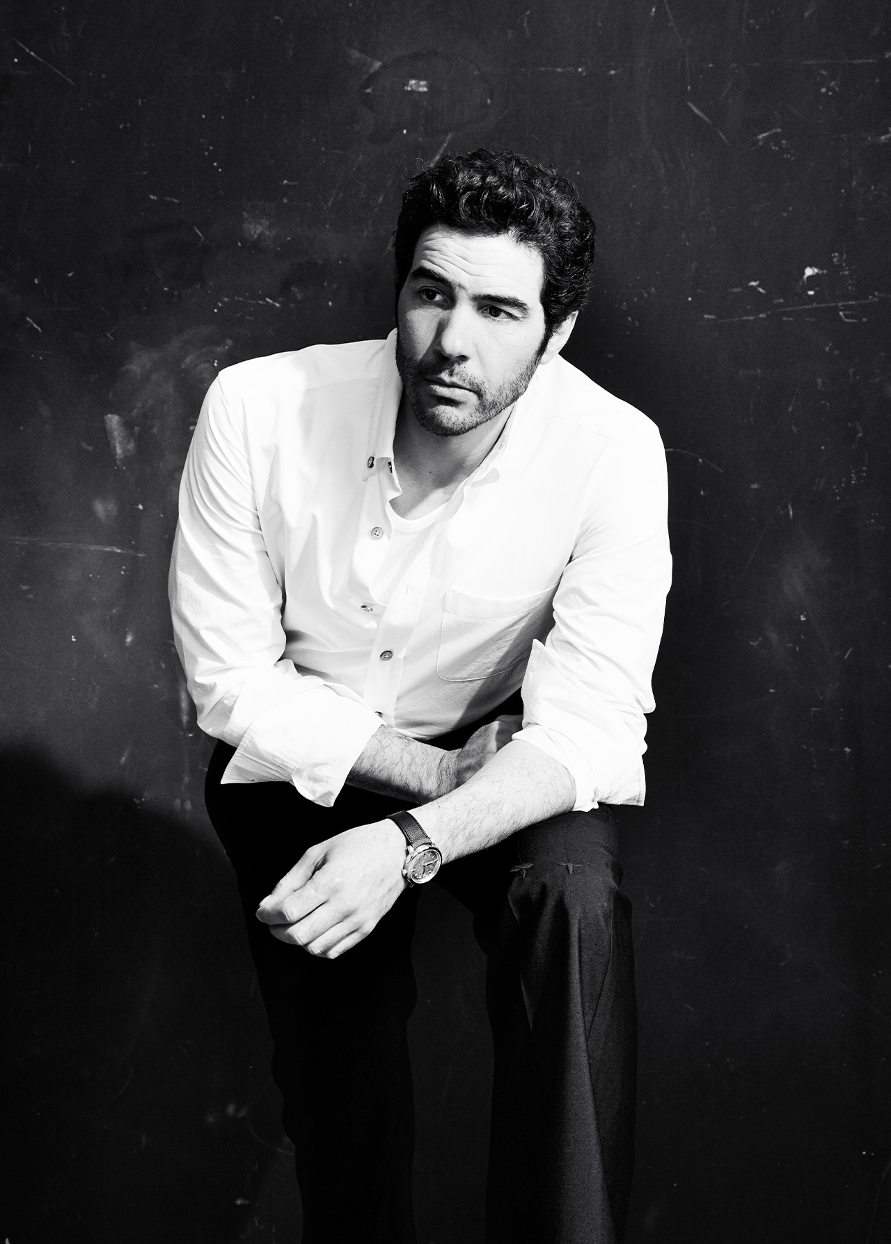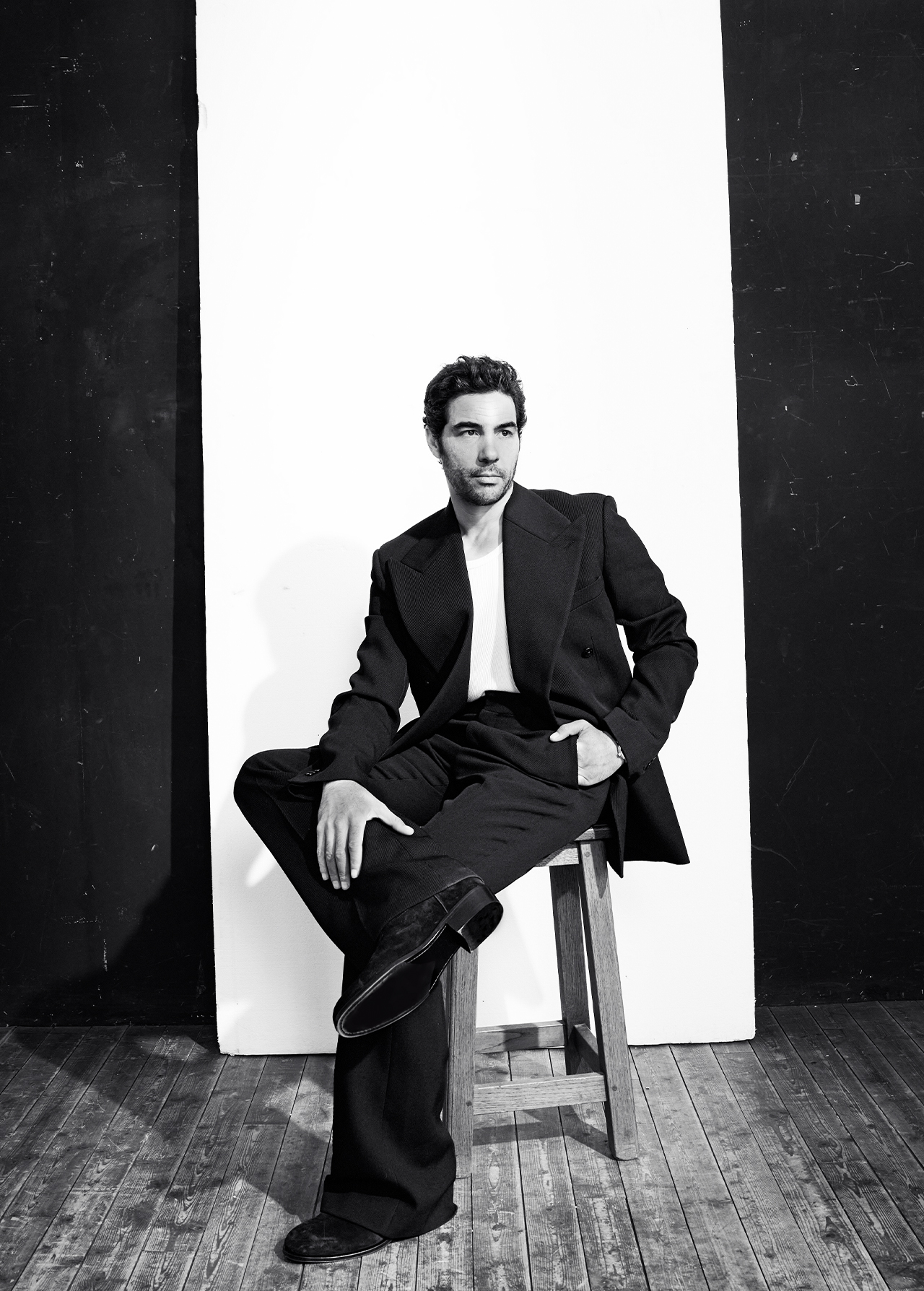 If we focus on our guest’s go-getter side, we also come to learn his approach to acting. For Tahar Rahim, his initial connection with a role always starts with his body. He needs to literally get a feel for the character: taking its measure, so to speak, as a tailor might, but with the fervor of a boxer sizing up an opponent, eager to enter the ring. Just as he did when he tackled the role of Charles Aznavour for the biopic of the Franco-Armenian (and thus dual-national) music legend, set to release in cinemas this autumn. “Aznavour, perhaps more than others, had a very particular way of holding himself and moving,” Rahim explains.