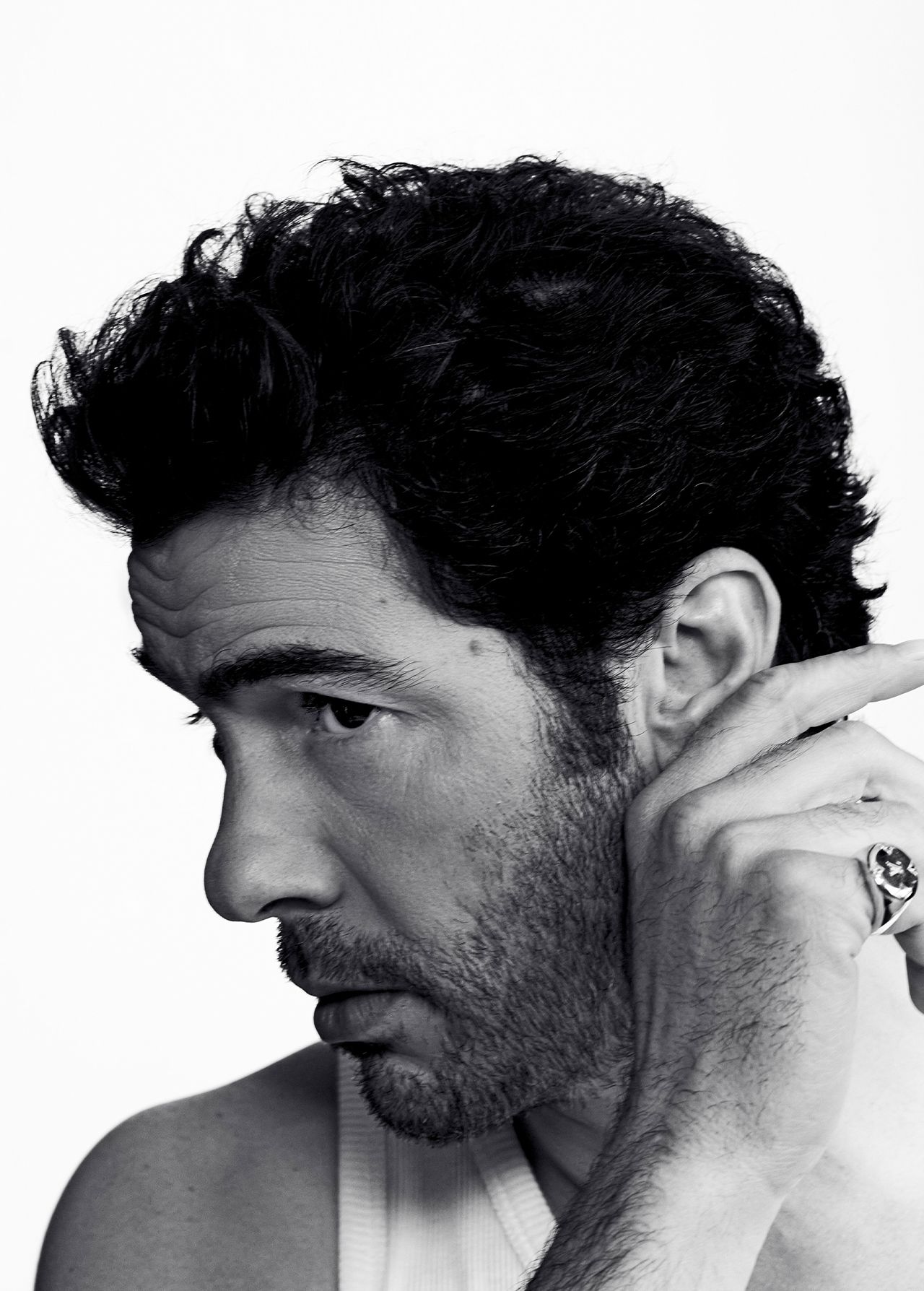 Fourteen years on, his framework remains the same. His face has gained a few light wrinkles, fitting for a man in his forties with a family life. Tahar Rahim has had four children with his wife, actress Leïla Bekhti. Comfortably nestled in a sofa, he still seems ready to spring up at any moment, like a jack-in-the-box, sharpened by a recent fitness program designed with his personal trainer. He nearly had a career as a sports teacher himself and says he prefers intense, athletic training over more regular physical activity. When he swam competitively, he specialised in short-distance butterfly, excelling more in explosiveness than fluid grace.