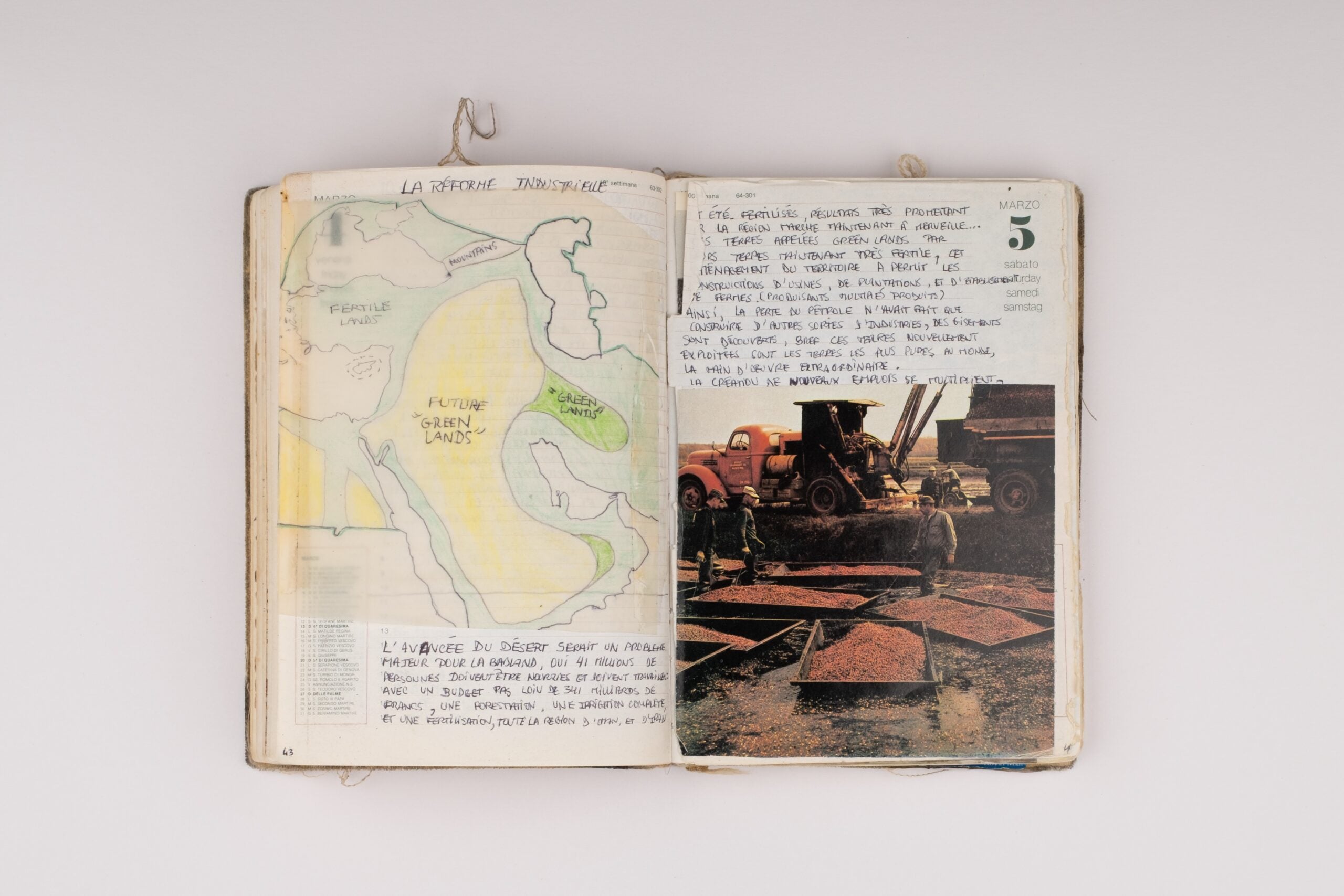 They scribbled the pages of their grandfather’s diaries with written and pictorial details – made-up maps and magazine cut-outs – of their own imaginative lands, named after themselves, ‘Jadland’ and ‘Badland’. “As you can imagine, some of the summers were very long and we were bored a lot. We started imagining that we were kings of fictitious countries,” the Dubai-based artist tells ICON MENA. “It was more of an obsession in childhood, not knowing really what to do with it. It would take hours of my day. I don’t consider them works per se, but they are somehow my genesis.”