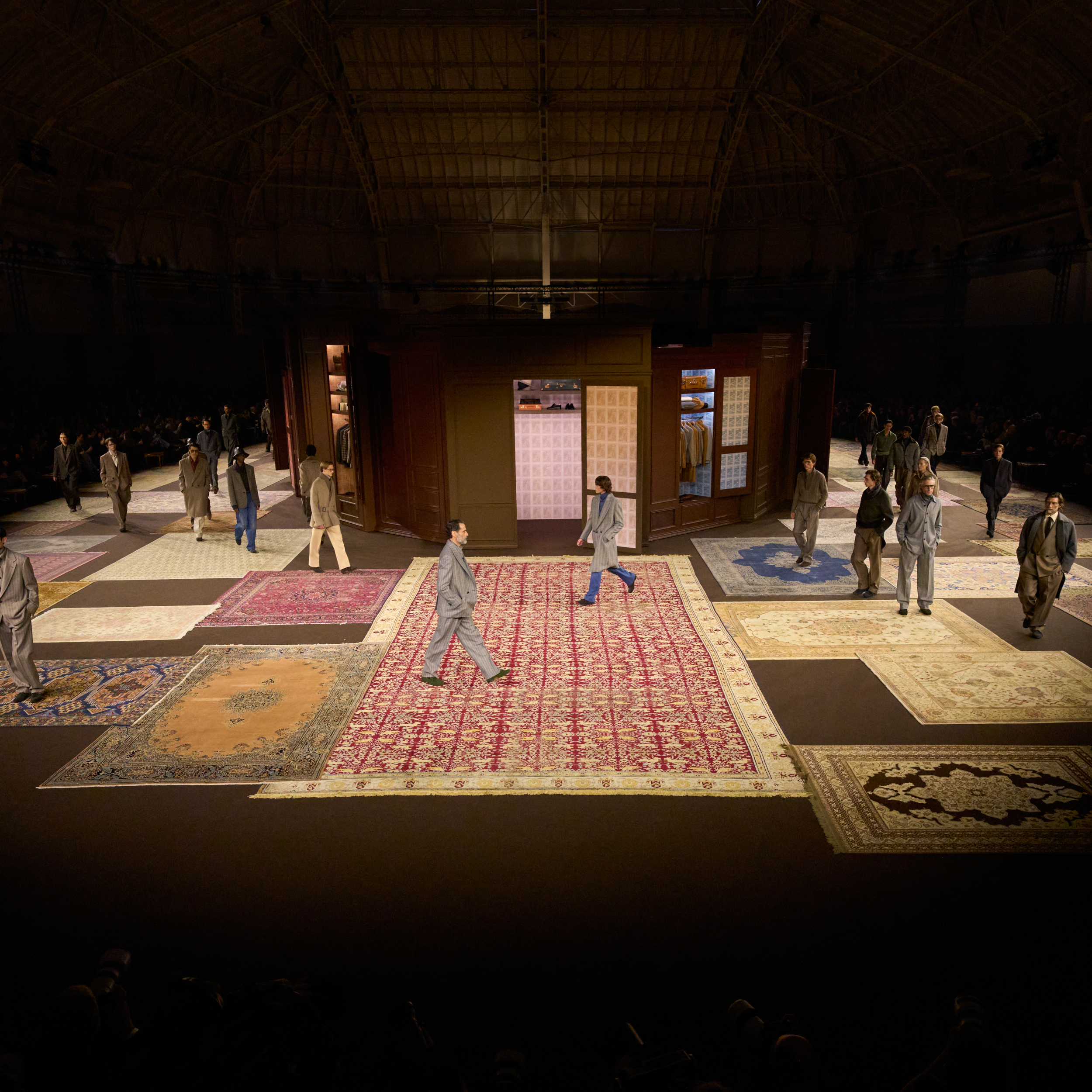 The closet acts as a centerpiece for the stage, and pieces from their family members’ personal collections include items inherited from older Zegna generations, showcasing the generational appreciation the Zegna family has for its history and the longevity of its art.