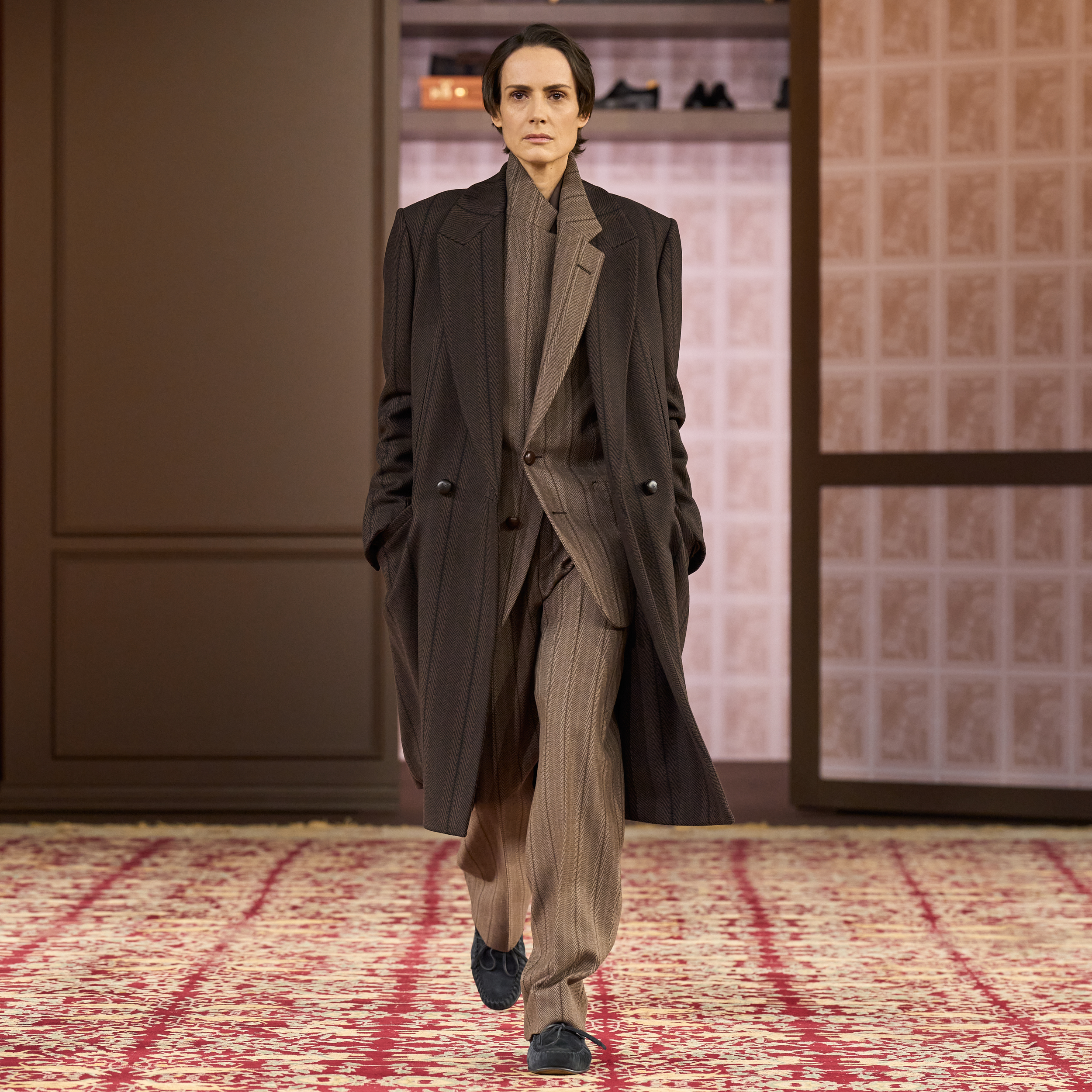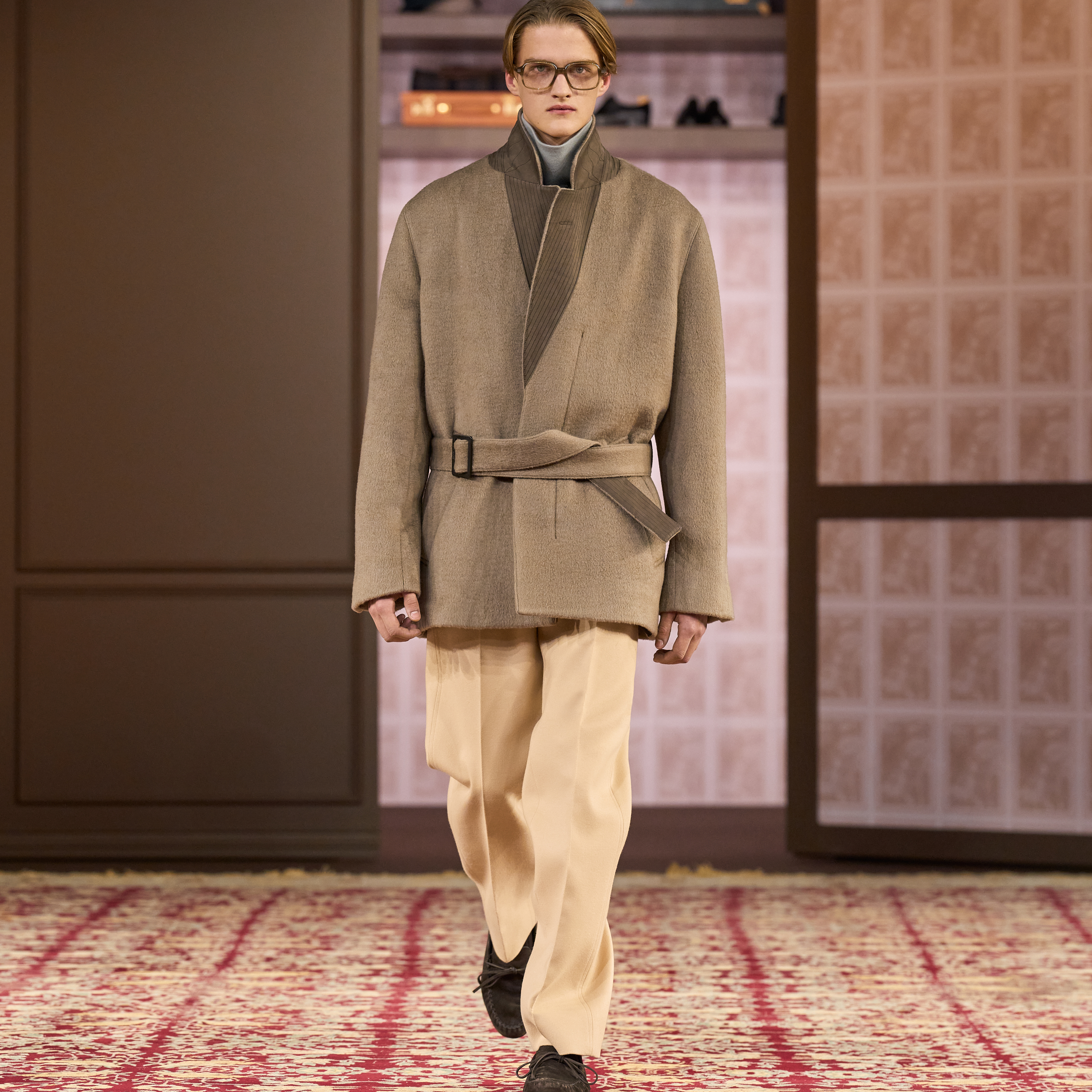 Established in 1910, the Italian institution remains in the committed hands of the Zegna family, generations passing the baton to one another. Over decades, the brand’s identity was written by a heritage of craftsmanship and intentionality transcending trend culture. At the Winter 2026 Milan show, past creations from the personal collections of Gildo and Paolo Zegna, third-generation Zegna family members who are actively involved in the brands present day operations, are showcased.