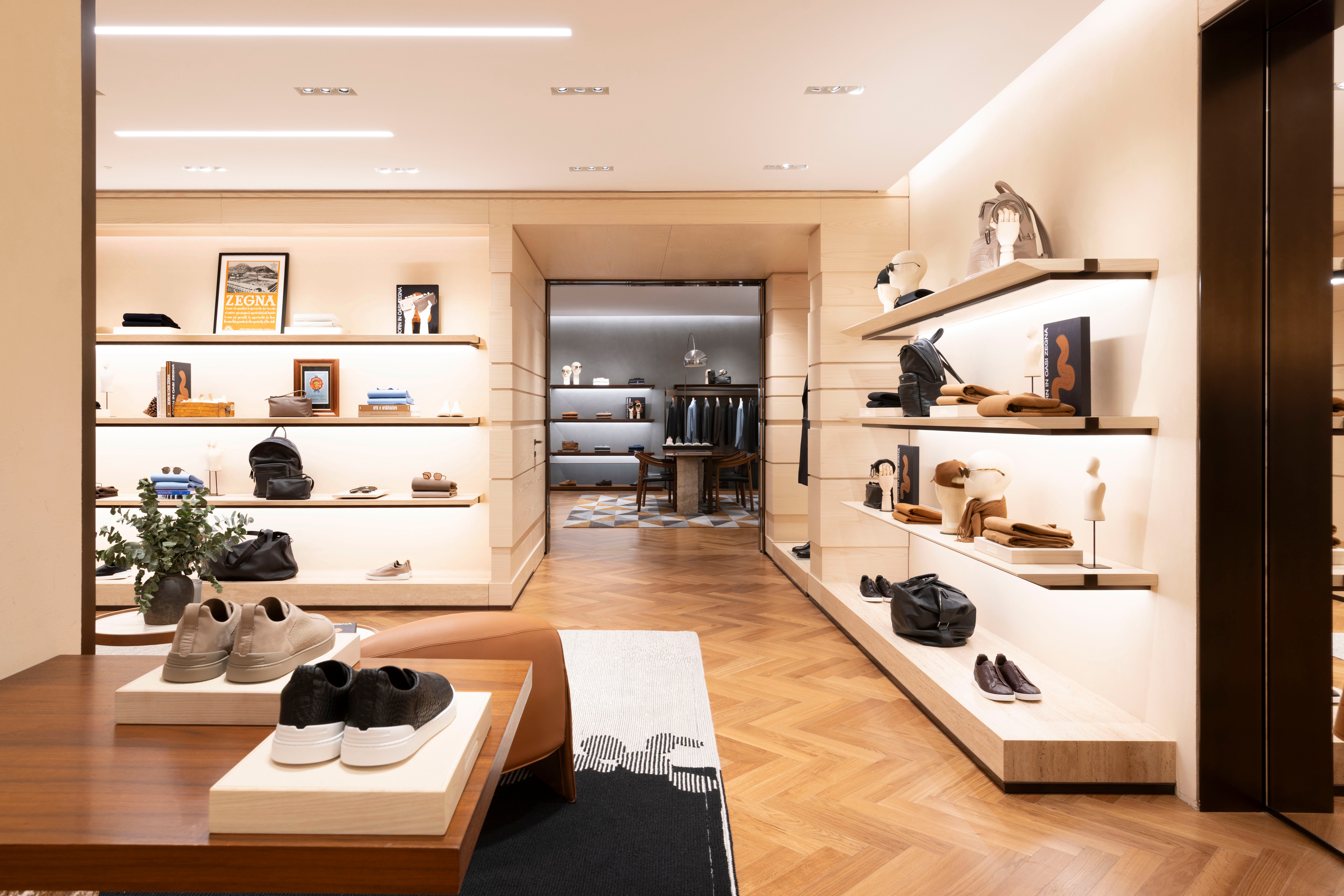 The store covers the entire breadth of ZEGNA’s sartorial universe, from elevated leisurewear and tailoring to footwear and accessories. You can spot Torino style tailoring, the AW25 season’s anchor which pays homage to the founder’s first suit. Iconic ZEGNA pieces like the Il Conte jacket and Triple Stitch shoe also feature.